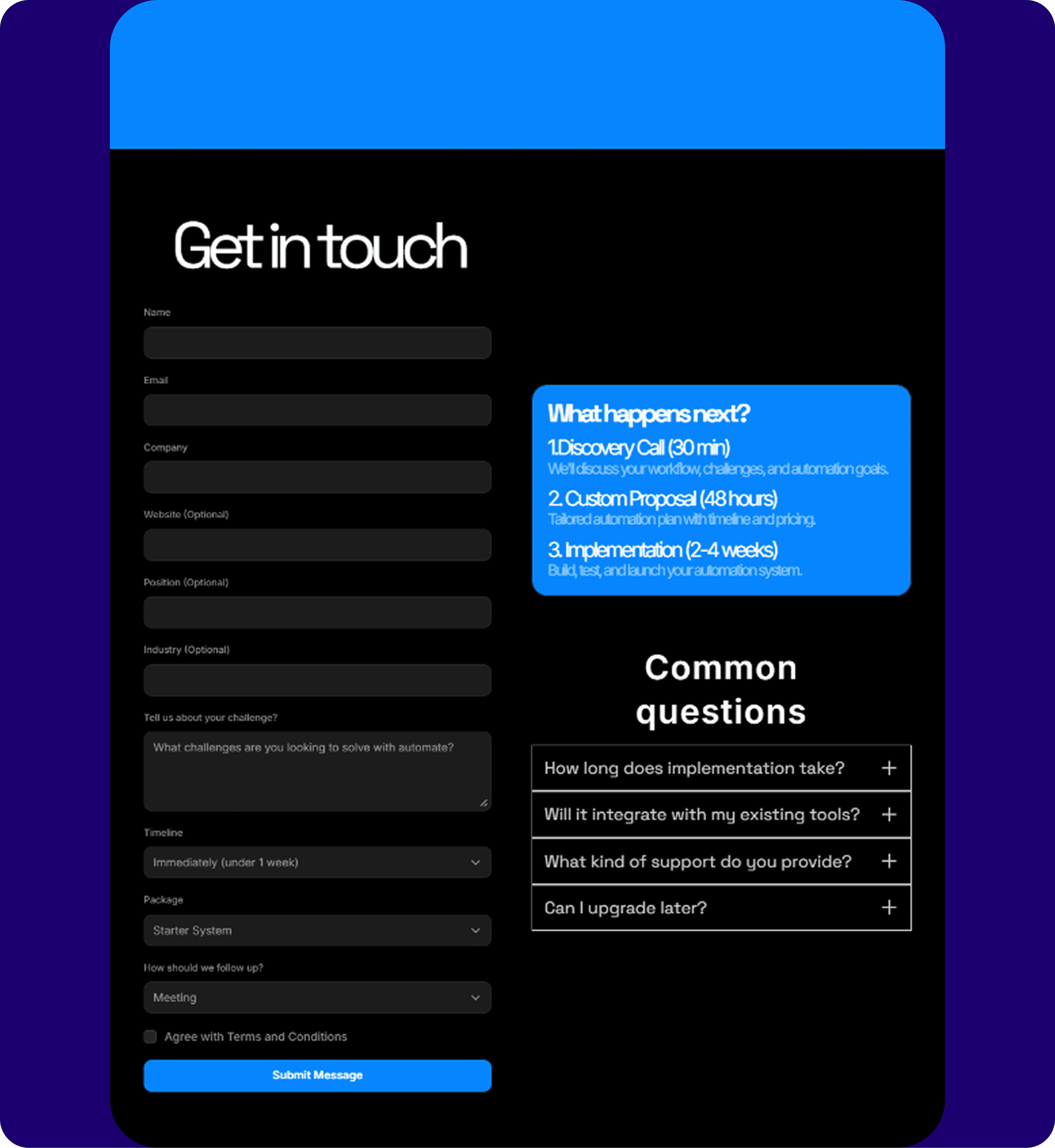 The Premium Automation System is designed for businesses that want their website to actively support their sales and enquiry process. Instead of relying on manual replies and follow-ups, this system works in the background to capture, organise, and respond to leads automatically.